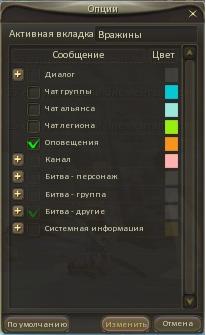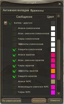 В открывшемся меню отмечаем все действия врагов, какие найдем и корректируем цвет выведения сообщений о таких действиях (желательно яркий цвет, чтоб сразу было заметно).